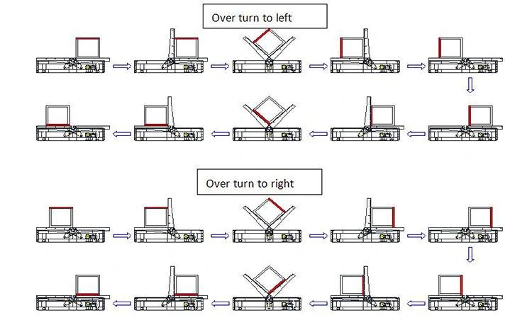 Жабдық негізгі машинадан, гидравликалық жүйеден және электрмен басқару жүйесінен тұрады. Бір уақытта екі арық флипптерлер тобы бір уақытта аударылып, қозғалу үшін қолданылады. Екі сәулелік штепсельдердің бұралып алу процесі ең көп гидравликалық синхрондау клапандарымен басқарылады. Дайындаманың 90 ° айналып өтуіне қол жеткізу үшін дайындаманың айналым процесін қолмен басқарыңыз.