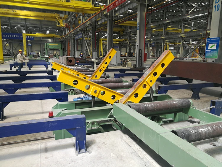 Әр жиынтықта екі дана гидравликалық сәулелік флипптерлер беріледі, негізінен, негізінен бір жағынан дәнекерлеуден кейін дайындамалар үшін қолданылады. Жұмыс істеп тұрған кезде, дайындаманы роликтер үстелінен немесе дайындамадан шығарып алыңыз, ал жұмыс бөлігін роликті кестенің немесе дайындаманың сөресінің бүйіріне жылжыту үшін екі рет құлатылған кронштейндерді шығарады. Содан кейін, екі гидравликалық цилиндр екі L-тәрізді қолды синхронды бұру үшін басқарады. Дайындамадан кейін ол аударылғаннан кейін, ол ролик кестесінің немесе дайындаманың ортасының ортасына ауыстырылады, содан кейін дайындама келесі процесске немесе дәнекерленгенге тасымалданады.